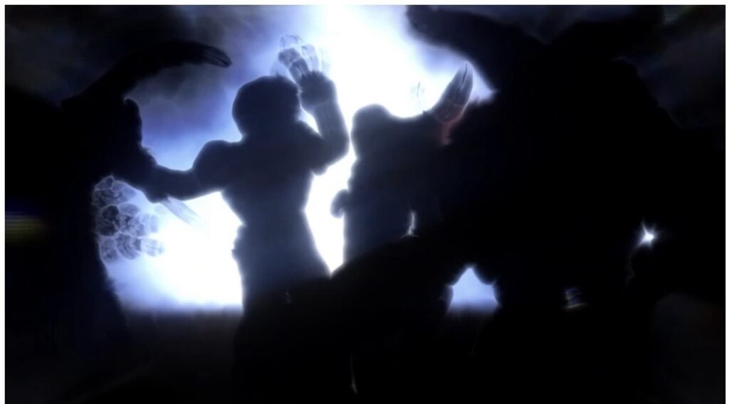 特にウルフvsガリュードのバトルはドローンカメラを使っているのかぐわんぐわん目まぐるしく動き回る疾走感あるバトルにエフェクトもバンバン使って非常に派手でかっこいいものに仕上がっていた。ひたすら動き続けるんじゃ無く決めのシーンではピタッ!と止まりそこからまた動き出す緩急がまた良い。
