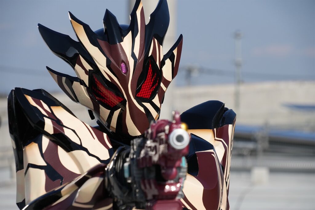 変身時に首から顔にかけて入るヒビのエフェクトは砕けたクッキーとかけた演出。通常のブレイクッキーやベイクにはなかった胸の中心に走るひび割れや全身のマーブル模様、そして赤い目がより凶悪でダークな印象を感じさせてかっこいい。