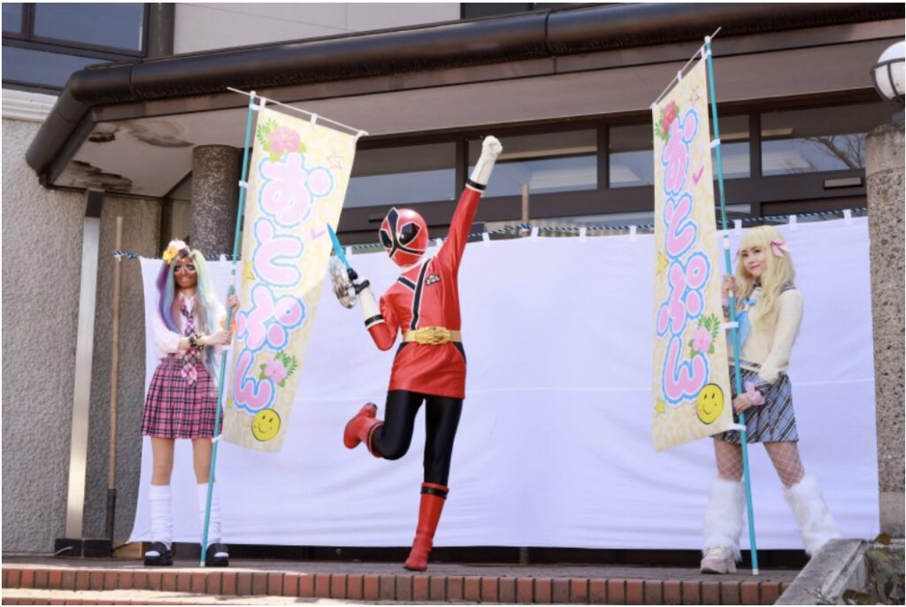 まず登場シーンから鼓と拍子木の音、持ち込まれる陣幕にのぼり旗とシンケンジャーの特徴をバッチリ再現。持って来たのは黒子さんじゃなく、ガングロギャルだったけど。