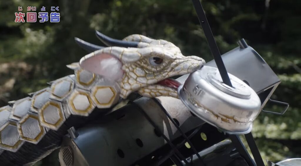 今回の怪獣 伝説蛇獣オオクニノヌシノミコト 通称ミコトは全編に渡り操演によって描かれていた。