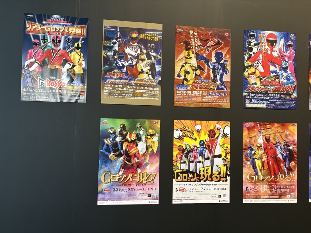 『東京ドームシティアトラクションズ』がまだ『後楽園ゆうえんち』と呼ばれていた昭和・平成初期戦隊のものから現在最新の『ゴジュウジャー』までの歴代のヒーローショーポスターも張り出されている。これはTDCA開催ならではだな。
