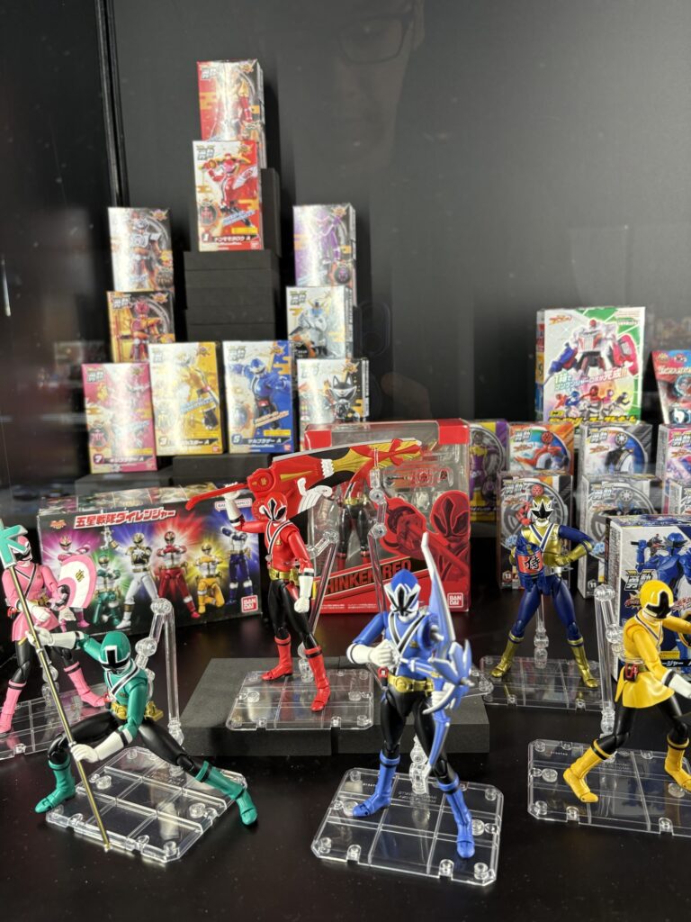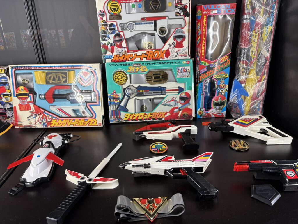 『デンジマン』のデンジパンチ、『サンバルカン』のバルイーグルのバルカンスティック(刀)、『バイオマン』のピーボや『ライブマン』のコロンのマスク、『チェンジマン』の地球守備隊のユニフォーム、『ジェットマン』の凱のヘルメット、『カーレンジャー』のホワイトレーサーの衣装などいちいち凝視していたらここに住まなければいけないってくらい色々飾ってあって興奮しっぱなし。