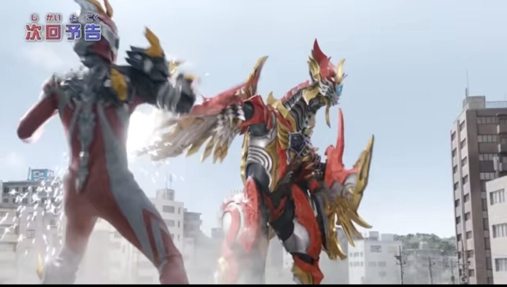 バトルスタイルは人間体時と同じく格闘を好むようで人間体時にもやっていた動きをまんまやってたりするのがいいね。胸部にある発光体はカラータイマーのように光るし黒いメテオのことも考えると本質的にはオメガとゾヴァラスは同種みたいな可能性がありそう。