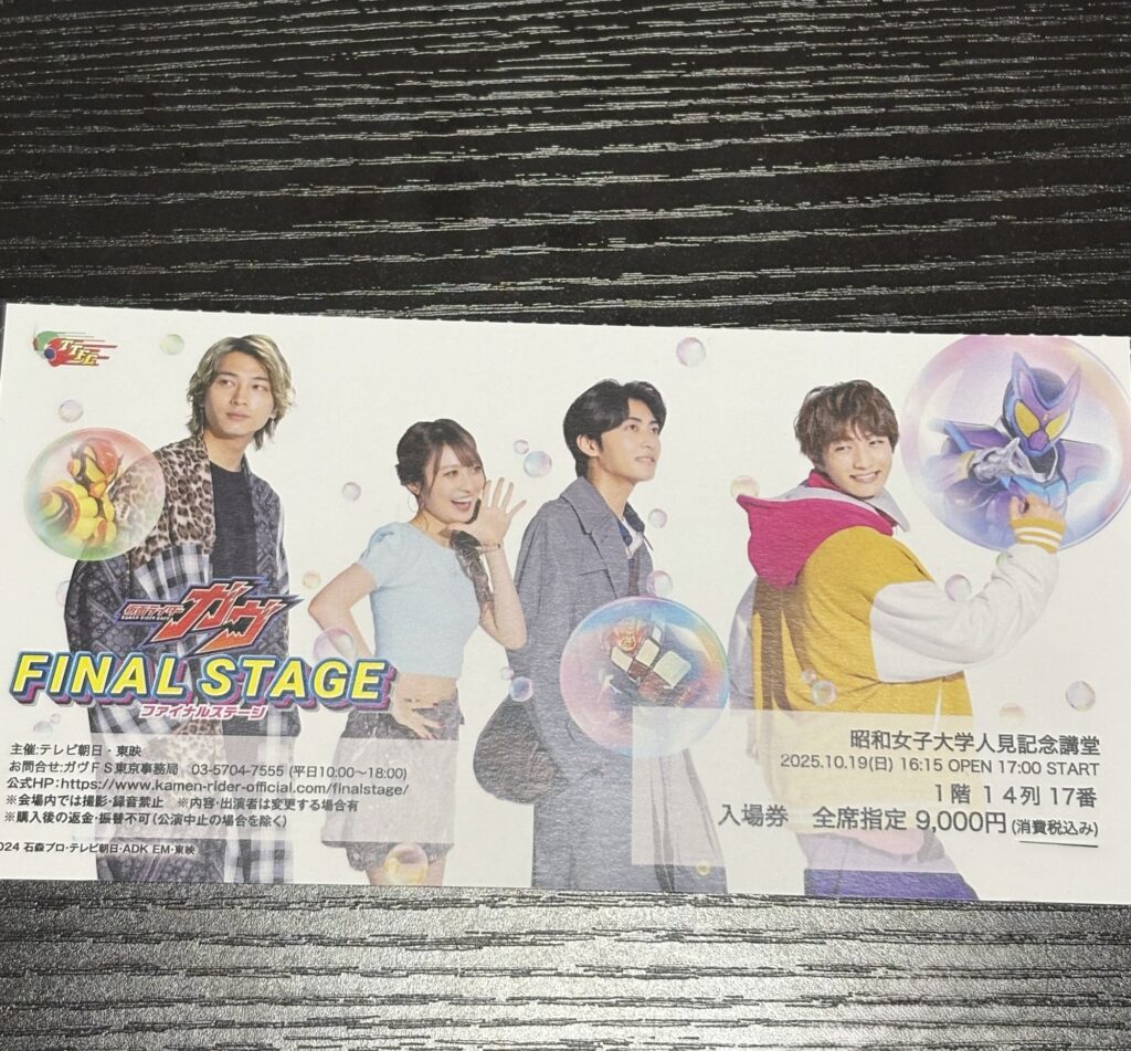これは私が近年行ったファイナルステージのチケット。見ての通りめちゃくちゃステージに近い激強の席を取れている。『ギーツ』の時なんかガチの最前列だからね。