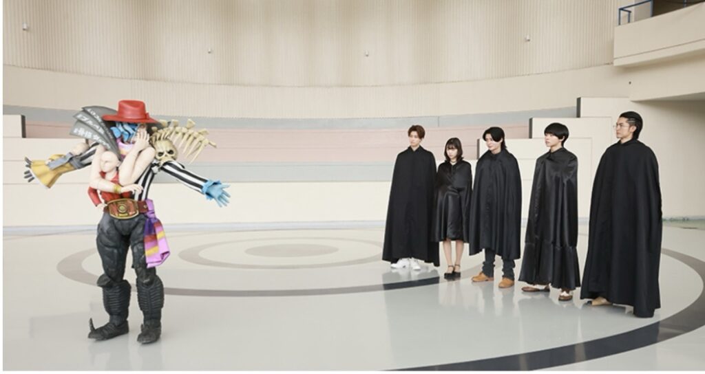 しかしながら凄いなと感じたのは本編に露骨だったり不自然なカットは終始見られず、合成によって見事なまでに角乃の姿を消していた事。例えば上記画像のように本来後半ゴジュウジャーがファッションノーワンの前にやって来るシーンは全員が揃っている筈なのに本当に一切違和感なく消してしまえている。